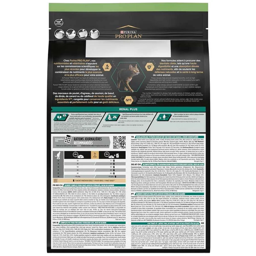- PRO PLAN® Sterilised Renal Plus Somonlu tam kuru kedi maması, kısırlaştırılmış yetişkin kedinizin bir öğünde ihtiyacı olan tüm besinsel öğeleri içerirken kedinizin böbrek sağlığınının korunmasına destek olur.